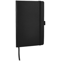 Touch cover notebook A5 formaat met ingebouwde elastieksluiting, paginalint, opbergvak aan de binnenkant en 80 pagina’s van 80 gram gelineerd papier. Thermo PU Plastic.