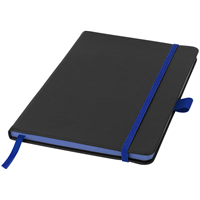 A6-Notitieboek met bijpassend(e) elastische sluitband en lint. Bevat 96 vellen lijntjespapier (60g/m2). Pagina’s niet helder wit. PVC bedekt karton.