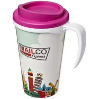 Geïsoleerde beker met draaideksel en geintegreerde handvat. De beker heeft een full colour all-over bedrukking welke tijdens het spuitgiet proces één wordt met de mok, waardoor deze slijtvast en duurzaam is. Compatibel met EN12875-1, vaatwasmachinebestend