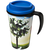Geïsoleerde beker met draaideksel en geintegreerde handvat. De beker heeft een full colour all-over bedrukking welke tijdens het spuitgiet proces één wordt met de mok, waardoor deze slijtvast en duurzaam is. Compatibel met EN12875-1, vaatwasmachinebestend