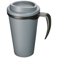 Geïsoleerde beker met draaideksel en geintegreerde handvat. De beker heeft een full colour all-over bedrukking welke tijdens het spuitgiet proces één wordt met de mok, waardoor deze slijtvast en duurzaam is. Compatibel met EN12875-1, vaatwasmachinebestend