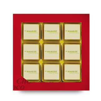 The chocolate squares are made of the finest Belgian chocolate (Cocoa Horizons-Certified from the top brand Barry Callebaut), milk, white and/or dark couverture | With 2 rows of 7 characters you can create your own sweet message | The Chocotelegrams are packed in a luxurious red gift box |Order quantity  > 5.000 pieces, price on request | Available in multiples of 40 pieces | Fast delivery | Available in bulk delivery at 1 address or sent individually to multiple addresses