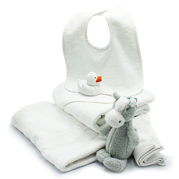 – Baby badcape. We borduren de naam van de baby op de badcape