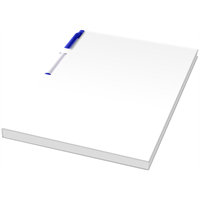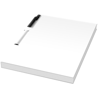Conference set in A5-formaat. Bevat een A5 kladblok met 50 bladen (80g/m2) blanco papier en een ballpointpen in de rug. De conference set heeft een harde omslag (350g/m2). Volledig gekleurde decoratie mogelijk aan beide zijden van de omslag en op elk blad