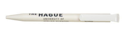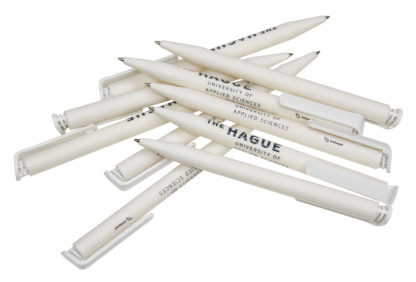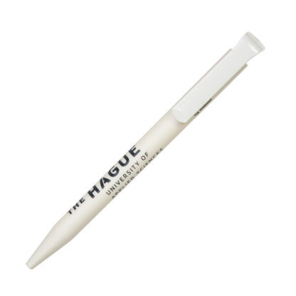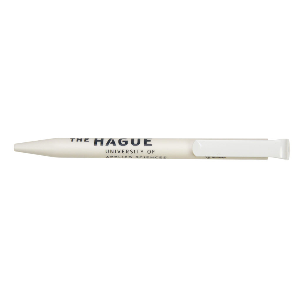 De houder is gemaakt van bio-kunststof (PLA op basis van suikerriet). Daarnaast is de bedrukte pen geproduceerd met groene stroom en gecertificeerde processen volgens de milieunorm ISO 14001. Een stijlvolle én duurzame keuze. Fijn schrijft ‘ie ook! Aantekeningen maken tijdens een lange vergadering wordt met deze pen een makkelijke klus. Bevestig de pen daarna weer gemakkelijk aan uw notitieboek, dankzij de handige clip.