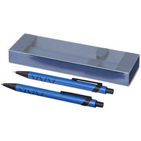 En mechanisch potlood met klikmechanisme in een bijpassende papieren geschenkverpakking. Zwartschrijvend. PVC.