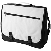 Met schouderband, hoofdvak en meerdere vakken onder de flap. Non-woven polypropylene, 150 g/m2.