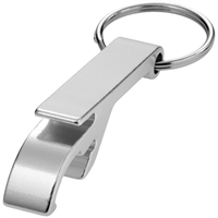 Fles en blikopener inclusief sleutelring. Aluminium.