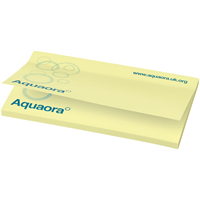 Sticky notes. Bevat vellen blanco papier van 80 g/m2. Standaard geleverd met 50 vellen, ook verkrijgbaar met 25 of 100 vellen. Decoratie in kleur mogelijk op elk blad. Afmetingen blad: 100x75mm. Papier, 80 g/m2.