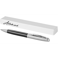 Van stylus en balpen met opvallend streeppatroon op de schacht. Blauwschrijvend. Geleverd in Avenue geschenkverpakking. Metaal.