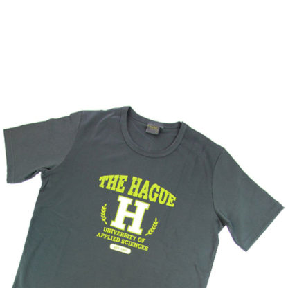 Vintage T-shirt heren grijs. T-shirt: donker grijs. Bedrukking in lime groen en wit. 220 gr/m2 100% katoen, bedrukking voorzijde in 2 kleuren (nieuw vintage logo), ronde hals. Gepersonaliseerd neklabel. Per stuk in folie verpakt.