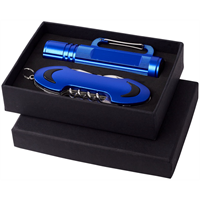 Met mes, schaar, kurkentrekker, flesopener, Philips schroevendraaier, nagelvijl, kast lifter met kratopener en platte schroevendraaier. Inclusief mini-metalen split sleutelring. Aluminium.